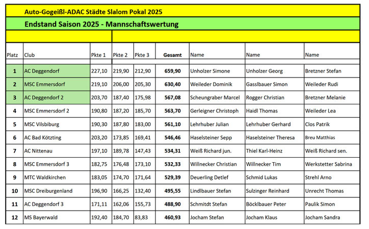 Einen Endstand waren wir noch schuldig, die Mannschaftswertung - aber der steht jetzt auch fest.