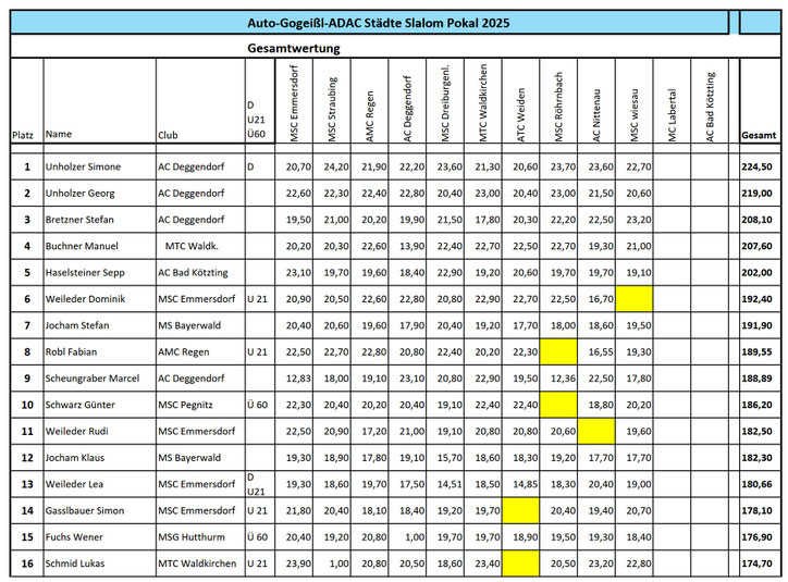 erst vor einer Woche haben wir den 5. Zwischenstand eingestellt und schon kummt der nächste. Der MTC Waldkirchen hat seinen Flugplatzslalom in Sonnen abgehalten und des Schosch als Oberauswerter hat am Montag bereits die neuen Zwischenstände parat.
